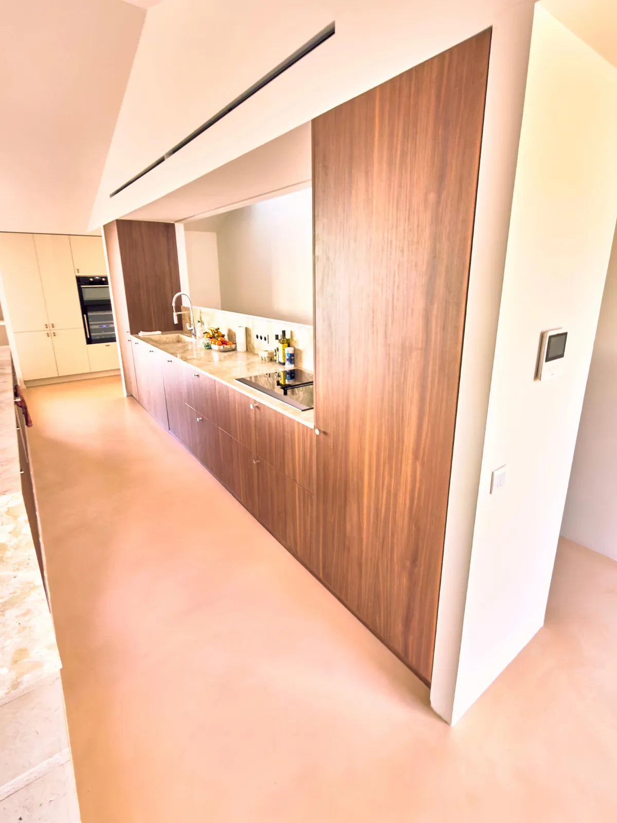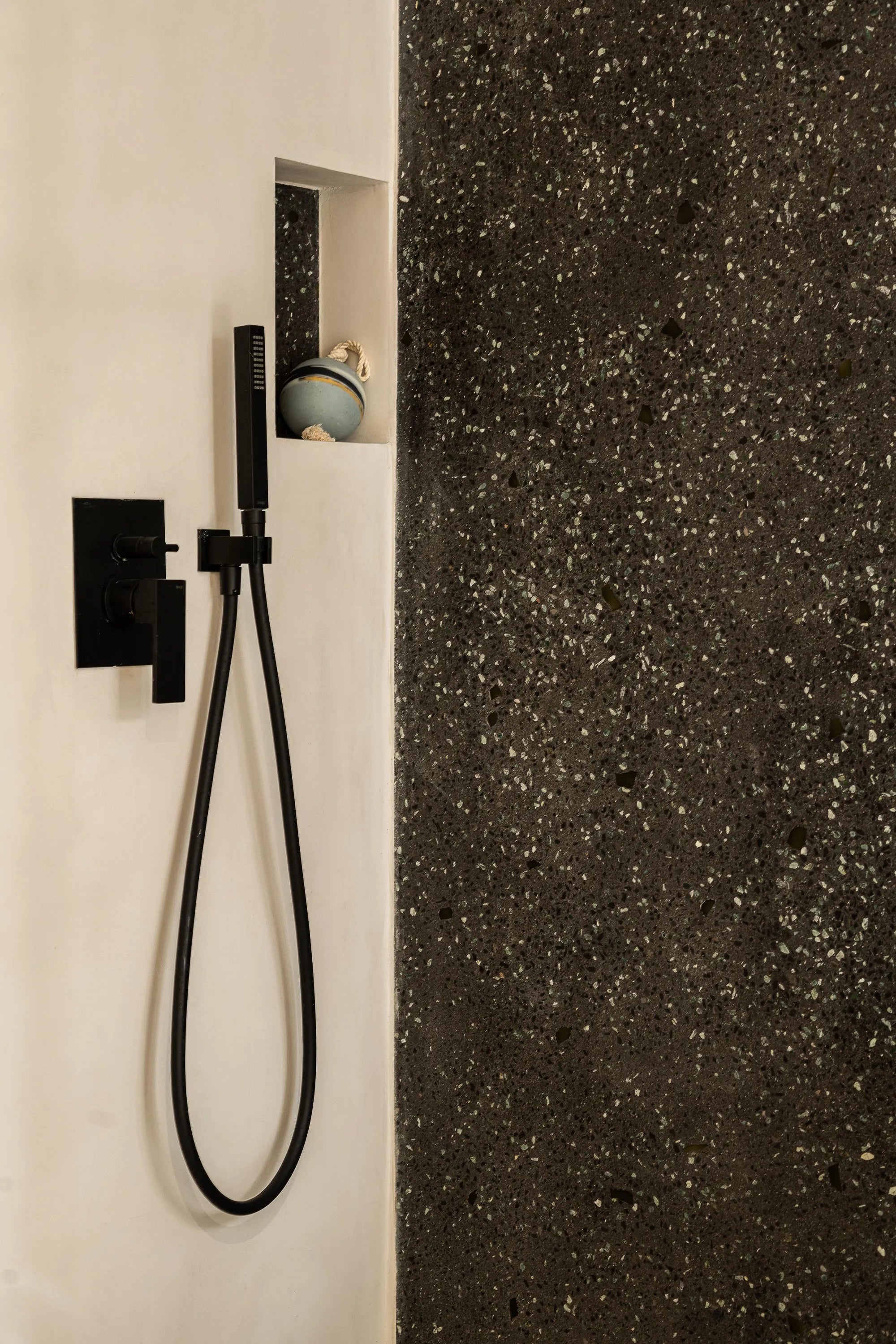 La matière dialogue avec la lumière, les volumes et les lignes du lieu.